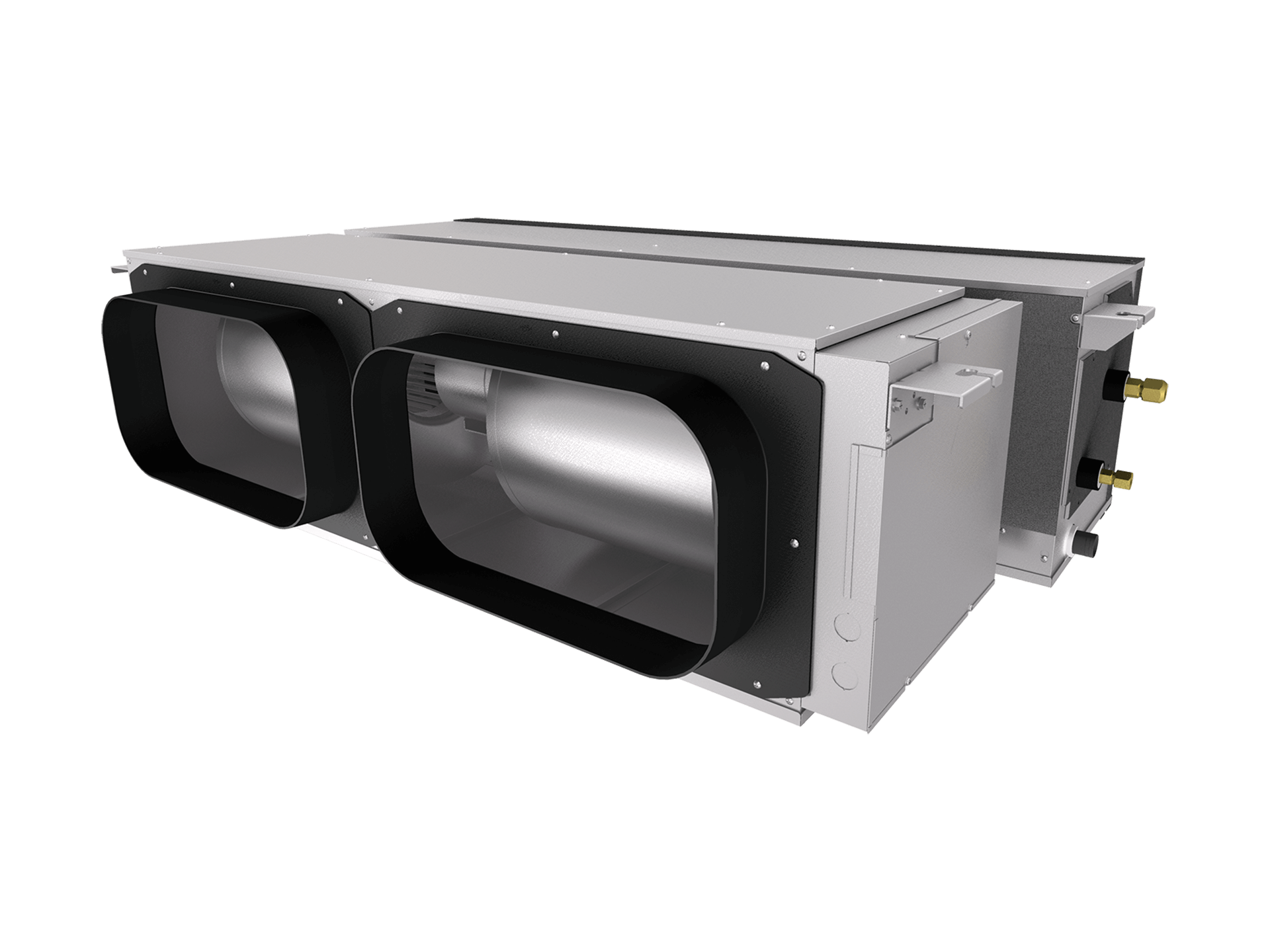This ducted fan coil has a two-piece construction, which allows for the separation of the indoor unit heat exchanger and the fan deck assembly. This is beneficial for installation into the roof space, for greater room capacities and increased variation in airflow; ensuring operation that suits most room layouts.